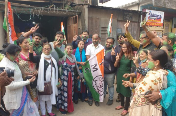 Tripura's Trinamool Congress (TMC) supporters has celebrated the victory of Trinamool in Kolkata Municipal Poll on today (21st December, 2021).