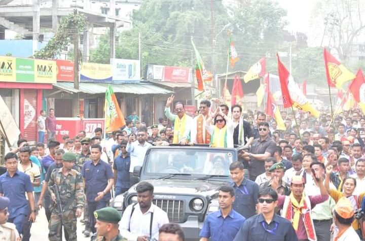 Agartala, 28th of March 2024 : Bharatiya Janata Party and Tipraha Indigenous Progressive Regional Alliance (TIPRA) Motha Party candidate Kriti...