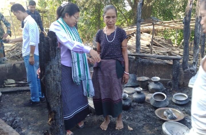 Gomati Tripura, 13th of November 2023 : The TRPC chairman PK Jamatia has visited to a house burnt victim Reang...
