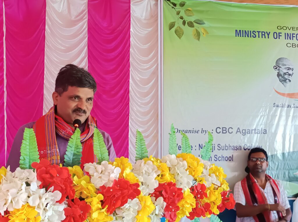 Agartala, Tripura, 7th of October 2024 : As part of the nation wide campaign, a one day awareness program on Swachhata Hi Seva was held at Netaji Subhash High School at Purba Jogendranagar in Agartala today under the aegis of the Central Bureau of Communication (CBC), Ministry of Information and Broadcasting (MIB). The program was inaugurated by Councilor of Agartala Municipal Corporation Smt Ruma Das along with Shri Kripa Shankar Yadav, Additional DG of the MIB, North East Zone. The aim of the awareness program was to make people aware about the Swachh Bharat Mission and how cleanliness is of utmost importance not only in our life but also in society. In the program, all participants took the Swachhata Pledge and an interactive session.