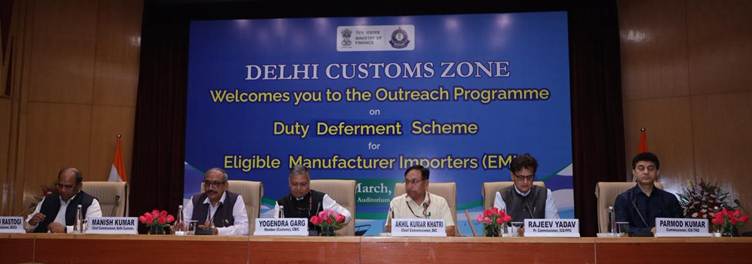 Shri Yogendra Garg, Member (Customs), CBIC; Shri Manish Kumar, Chief Commissioner, Delhi Customs; Shri Sanjay Gupta, Chief Commissioner, Delhi Customs (Preventive) Zone; Shri Akhil Kumar Khatri, Chief Commissioner, DIC; representatives from trade bodies, industry, and key stakeholders also participated and deliberated upon the benefits and modalities of the EMI Scheme.