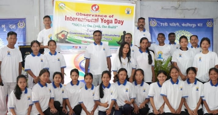 Khumulwng, Agartala, Tripura,21st of June 2025 :  With the joint initiative of CCRYN, GDC Girls Hostel & 71 Bn CRPF of Khumulwng International Yoga Day 2025 has been observed here in Judo hall in Khumulwng (TTAADC) today. On this inspiring occasion a large number of dignitaries from CCRYN, GDC & 71 Bn CRPF have assembled here in the programme venue and took participation in the event.