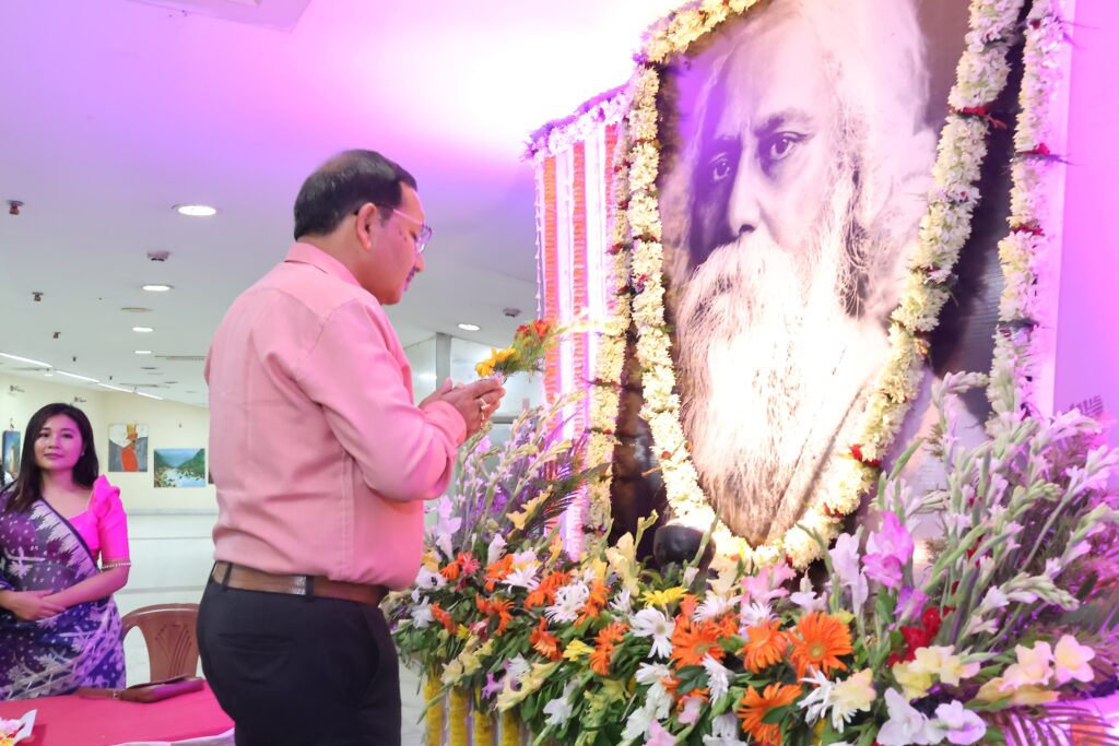 Agartala, 8th of May, 2024 : With the initiative of Information & Cultural Affairs Department Government of Tripura celebrated the Birth Anniversary of Rabindranath Tagore at Rabindra Satabarshiki Bhawan, Agartala on Wednesday (8th May, 2024). In the presence of many dignitaries Secretary of Information and Cultural Affairs Department Dr. Pradip Kumar Chakraborty has inaugurated the programme by lighting the lamp.