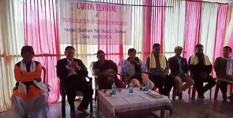 Khowai, 4th of February, 2024 : With the initiative of Laicon Manipuri Cultural organization committee celebrated 40th Foundation day at Jambura Nat Mandir, Khowai on Sunday (4th February, 2024). On the occasion of the 40th foundation day, a 14-day Theatre Workshop was organized by the Laicon Manipuri cultural organization. The Theatre workshop was inaugurated by lighting the lamp by L. Birmangal Singha, Secretary Manipuri Sahitya Parishad and other dignitaries. Ushrani Singha, Member of Khowai Municipal Council, L. Kumar Singha Founder Member of Laicon Manipuri Cultural organization and many other dignitaries were present in the programme.