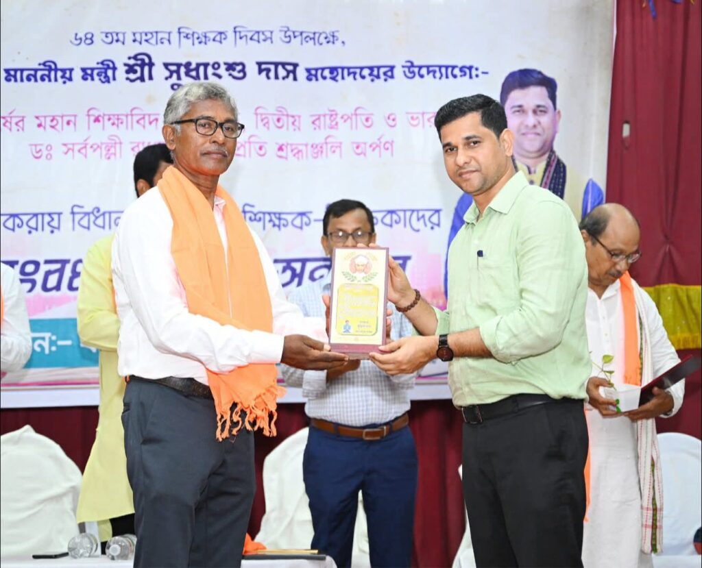 Addressing at the ceremony of 64th Teachers’ Day Hon’ble SC Welfare, ARD, Fisheries Minister Sudhangshu Das said that The personality of Bharat Ratna Dr. Sarvepalli Radhakrishnan always inspires us. The second President and Bharat Ratna Dr. Sarvepalli Radhakrishnan was a great educationist and philosopher of India. His birth anniversary is celebrated as National Teachers’ Day across the country. We have gathered here today to celebrate this great Teachers’ Day.” The Minister also added that Sarvepalli Radhakrishnan said that teachers are those who teach us to think for ourselves. If we evaluate his entire life, we will see that his personality always inspires and encourages us.