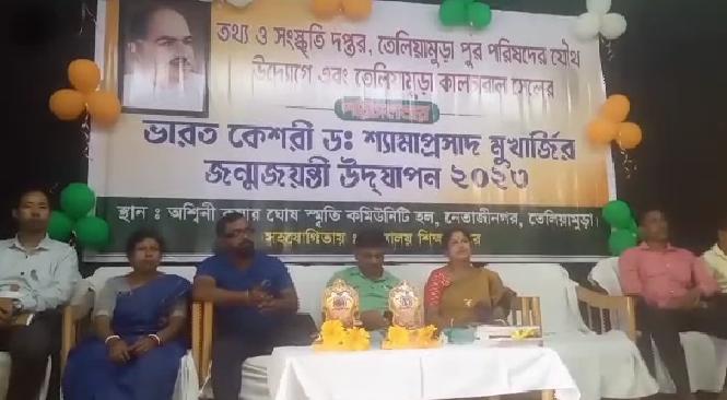 With the initiative of Information and Cultural Affairs Department of Teliamura celebrated Sub-divisional birth anniversary of Shyama Prasad Mukherjee in collaboration with Teliamura Municipal Council at Ashwini Kumar Community Hall, Teliamura on Thursday (6th July, 2023).