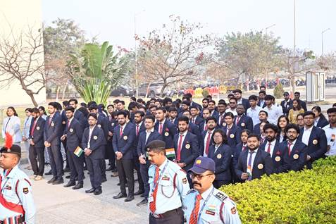 Dr. Bhimaraya Metri, Director, IIM Nagpur, hoisted the National Flag at the Indian Institute of Management, Nagpur campus on Monday, marking the Institute’s 77th Republic Day celebrations. The celebrations began with the flag-hoisting ceremony and a security march-past, followed by the National Anthem. A vibrant cultural programme was organised thereafter, showcasing the creativity and patriotic spirit of the campus community. Students, staff, and faculty members attended the event in large numbers.