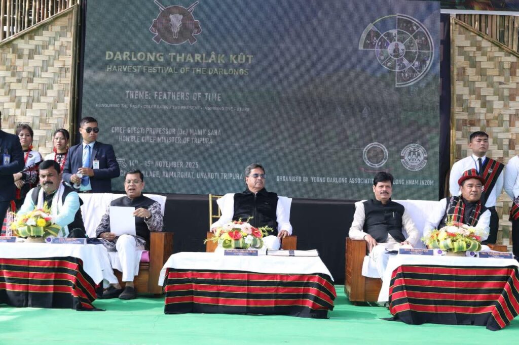 Addressing at the Darlong Tharlak Kut festival Hon’ble Chief Minister Dr. Manik Saha said that the State Government has been working tirelessly for the economic, social, and cultural development of the indigenous communities. In the state budget, various projects have been announced for the development of indigenous people. With funds allocated by NABARD, the Government is undertaking work to improve roads and other infrastructure in remote, tribal-dominated areas. Through these initiatives, the socio-economic standard of the indigenous communities is being improved.
