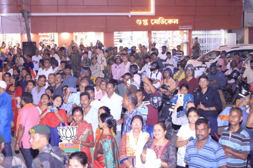 “You can see how many people have come for the rally. Keeping BJP-nominated candidate Jahar Chakraborty in front, a massive procession was held today. A huge number of people have come here, and I am confident that the BJP candidate Jahar Chakraborty, a very gentle man, will achieve victory. Compared to the way BJP received votes last year, this time it will surpass the margin,” he said.