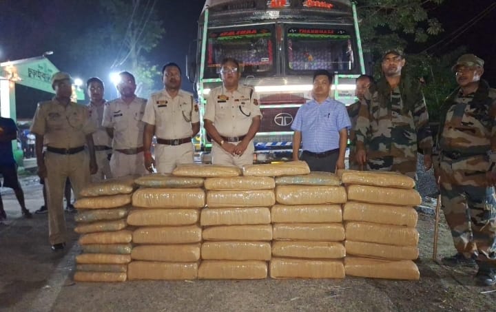 As per the police personnel, by eight o’clock from Agartala WB73D-5911 of AFC transport a ten wheeler vehicle has arrived at Churaibari Naka for going to other state. At that time OC Samaresh Das and other officers of the Churaibari Naka point were on duty have searched the 12 wheelers and detected a large quantity of dry Ganja just behind the driver seat in a secret cabin. The market value of the recovered Ganja is approximately fifty lakh rupees said the division Police officer Debashish Saha.