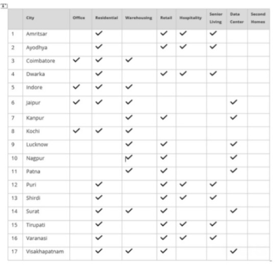 Bolstered by government policy support and infrastructure developments, spiritual tourism is poised to be a critical growth driver for the development of several temple towns in India. Upgrades in infrastructure and enhanced connectivity through improved roads, flagship trains, and new airports have the potential to attract organized real estate players to these spiritual destinations in the long term, specifically across hospitality and retail segments. Identification of high impact locations with respect to spiritual tourism involved analysis of multiple parameters including sanctioned allocations under various government programs, annual tourist footfalls in primary pilgrimage site, upcoming plans of real estate developers and land price appreciation. Amritsar, Ayodhya, Dwarka, Puri, Shirdi, Tirupati and Varanasi emerged as cities to watch out for in terms of growth driven by spiritual tourism.