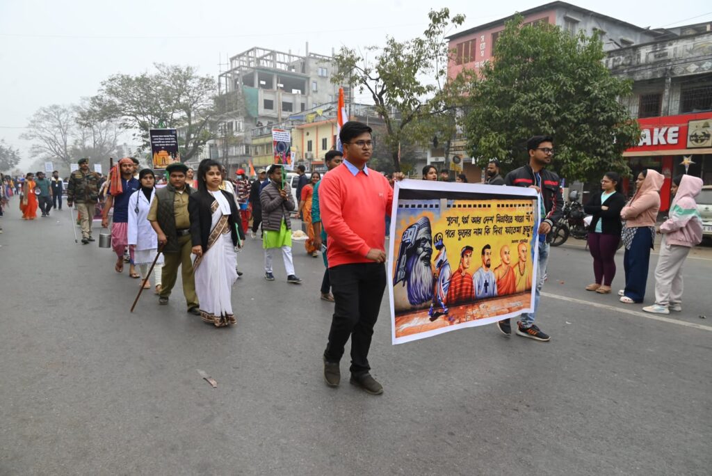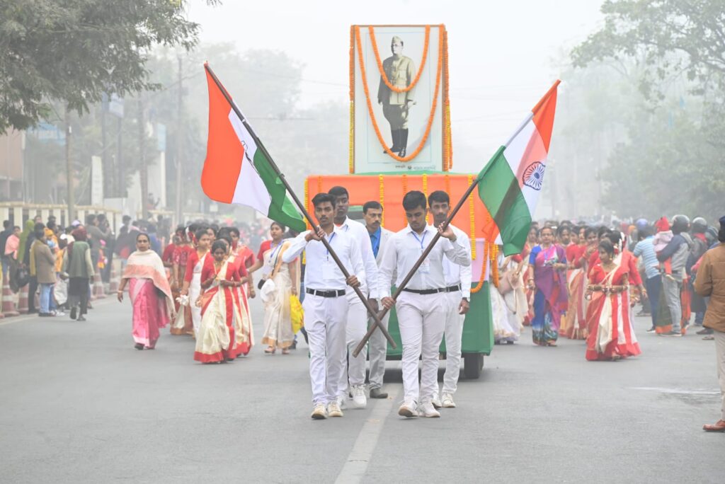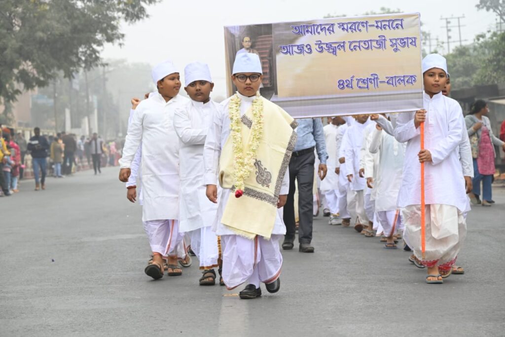 Agartala, Tripura, 23rd of January, 2025 : With the initiative of Netaji Subhas Vidyaniketan H.S. School celebrated Birth Anniversary of freedom fighter Netaji Subhas Chandra Bose at Netaji Subhas Vidyaniketan H.S. School premises, Agartala on Thursday (23rd January, 2025). As a part of Celebration of Birth Anniversary of freedom fighter Netaji Subhas Chandra Bose colourful procession was organized today. Students and teachers of different schools and colleges, NGO, social organization and many others remained participated in the colourful procession with a great enthusiasm.