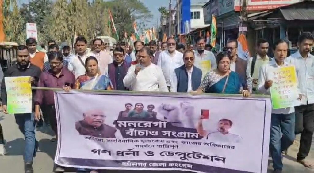 Addressing the gathering, speakers said that the right to work is a fundamental right, yet under the present circumstances many labourers are being deprived of fair employment opportunities and timely wages.Those present at the programme included North District Congress President Digbijay Chakraborty, Pradesh Congress Committee members Chayan Bhattacharjee and Kabel Nandi, District Congress Committee member Indrajit Pal, along with several other district-level Congress leaders.After the sit-in, a delegation submitted a memorandum to North District Magistrate Chandni Chandran. The memorandum demanded the immediate creation of adequate work opportunities under MGNREGA, prompt payment of pending wages, maintenance of transparency in the scheme, and the protection of democratic rights and constitutional values.Congress leaders warned that if their demands are not met, the party will launch a larger movement in the coming days. The programme concluded peacefully.