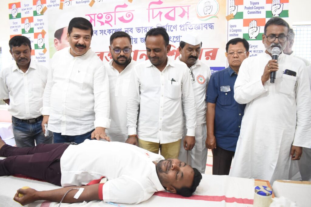 After hoisting the flag, they paid homage to the former prime minister’s portrait. On this day, a blood donation camp was organized at the Congress Bhavan by the initiative of the Congress Sadar District Committee. Tripura Pradesh Congress MLA Sudip Roy Barman and other congress leaders and activists also paid tribute to former Prime Minister Rajiv Gandhi.