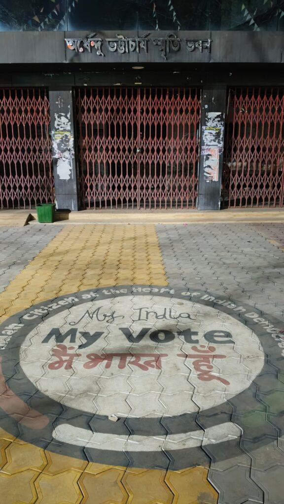 Dharmanagar, Tripura, 24th of February, 2026 : A wave of criticism has emerged in Dharmanagar over a voter awareness painting drawn on the ground in front of Ardhendu Bhattacharya Smriti Bhavan ahead of National Voters’ Day on January 25.The awareness artwork, created at the main entrance of the premises, carries the messages “My Vote,” “Me Bharat Hoon,” and “My India.”