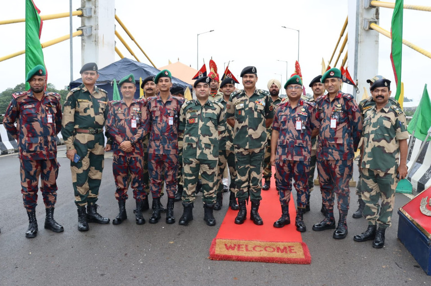A Coordination meeting between Nodal officers of BSF & BGB was held on 5th Aug 2023 on Maitri bridge, Sabroom. Indian delegation was led by Sh Saroj Kumar Singh, PMG, PMMS, Deputy Inspector General, Nodal officer BSF Tripura Frontier and BGB delegation was led by S M Shafiqur Rahman, psc, G+ Director, Nodal officer South East Region, Chattogram.
