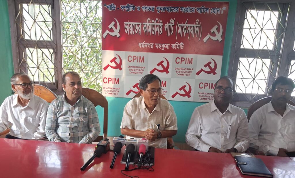 The party’s state secretary and Leader of the Opposition, Jitendra Chaudhury, was present at the event.He was accompanied by CPI(M)’s nominated candidate for the Dharmanagar Assembly by-election, Amitabha Dutta, MLA Islam Uddin, along with other senior party leaders.Addressing the media, Jitendra Chaudhury clarified the party’s position regarding the upcoming by-election. He spoke about the current political situation in the state, raised several allegations against the ruling party, and highlighted various issues faced by the common people. He also asserted that CPI(M) would receive strong public support in the by-election and emphasized the need for a free and fair democratic electoral process. Candidate Amitabha Dutta, in his remarks, shared his experiences of directly interacting with local residents. He stated that people are seeking change and are eager to witness genuine development on the ground. He expressed confidence that voters would make the right decision.