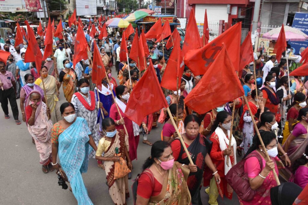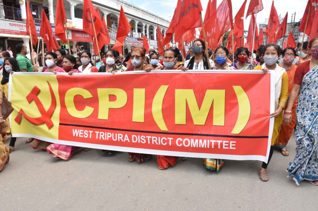 CPIM Party Workers organized a protest rally against vandalism by miscreants in Agartala on Today (9th September, 2021).