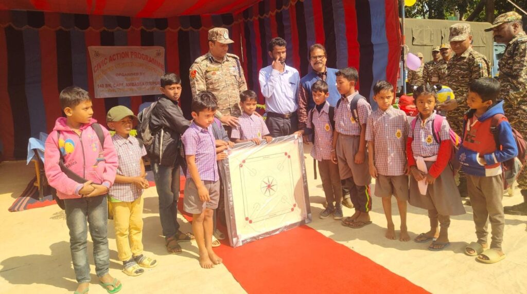 As part of the initiative, a total of nine solar lanterns, five volleyball nets along with five footballs, and one carrom board with coins and striker were distributed among the school, local clubs, and various community organizations. The items were distributed by Commandant Munna Singh of the 140 Battalion, CRPF.The programme was attended by Officer Commanding of E/140 Battalion, Navin Kumar Nirala, local public representatives, teachers, and members of the media.