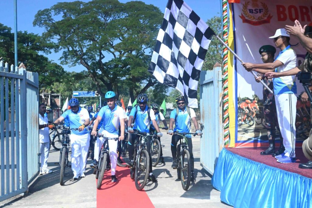 Sumit Sharan, IPS, IG BSF Tripura Frontier flagged off ‘Cycle Rally’ at ICP, Agartala on Tuesday (1st November, 2022). The ‘Cycle Rally’ will run from ICP, Agartala along the entire border of Tripura to M&C Frontier Meghalaya, Guwahati, North Bengal, South Bengal will be terminating on 12th Dec 2022 at Tagorevilla, Kolkata. The objective of this ‘Cycle Rally’ is to promote the spirit of comradeship, and sportsmanship among the troops & strengthen the bond between the border population and enhance mutual cooperation, coordination and trust thereby creating a sense of security and confidence amongst the border population.
