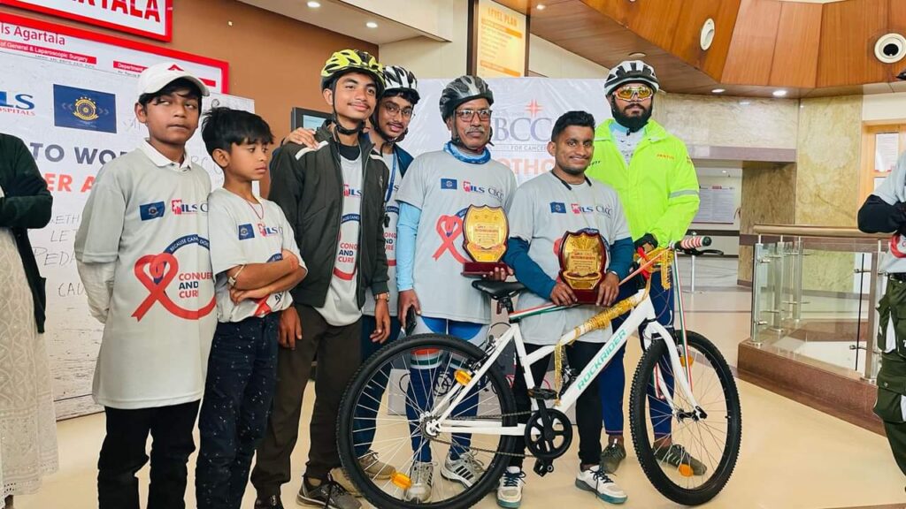 Amidst the other participants there were Mr. Rohan Naik Stratagy, Head CBCC, Mr. Ankush, Unit Head CBCC Raipur, Mr. R. Raman, CBCC Unit Head, Agartala, Mr. Tanuj, Operations Head ILS Hospital, Dr. Dipankar Prakash Bhowmik (MD), Dr. K. Sivasree, Medical Oncologist (DM), Mr. Gopesh Debnath, Bicycle Mayor of Agartala Cycloholics Foundation and many other dignitaries were present in the awareness Cycle Rally programme.