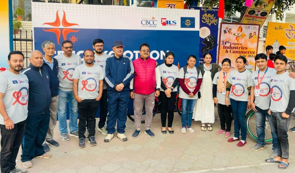 Amidst the other participants there were Mr. Rohan Naik Stratagy, Head CBCC, Mr. Ankush, Unit Head CBCC Raipur, Mr. R. Raman, CBCC Unit Head, Agartala, Mr. Tanuj, Operations Head ILS Hospital, Dr. Dipankar Prakash Bhowmik (MD), Dr. K. Sivasree, Medical Oncologist (DM), Mr. Gopesh Debnath, Bicycle Mayor of Agartala Cycloholics Foundation and many other dignitaries were present in the awareness Cycle Rally programme.