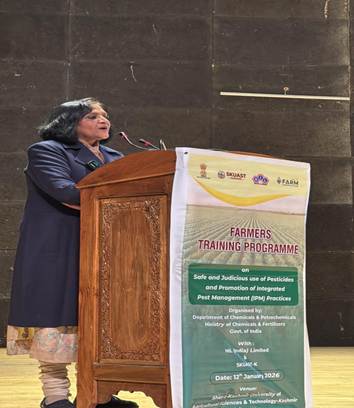 The Secretary was addressing one-day Farmer Training Programme at Sher-e-Kashmir University of Agricultural Sciences and Technology of Kashmir (SKUAST-K), Srinagar, on 12th January 2026, on the theme “Safe and Judicious Use of Pesticides and Promotion of Integrated Pest Management (IPM) Practices.”