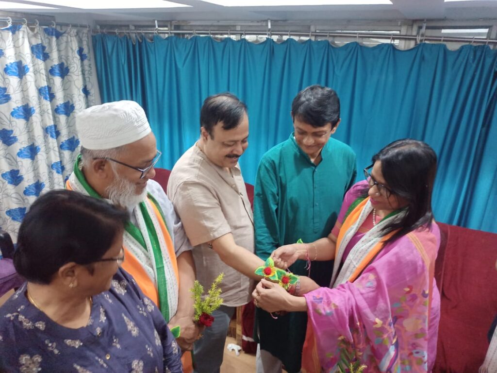 17-member delegates of Journalists from Bangladesh National Press Club, Dhaka arrived in Tripura on a four-day visit at the invitation of Agartala Press Club on Friday (1st September, 2023). Agartala Press Club President Jayanta Bhattacharjee, Agartala Press Club Secretary Ramakanta Dey welcomed the delegation with greeting. Raksha Bandhan festival was celebrated between the journalists of the two countries. They are welcomed by wearing red roses and northern traditions and customs of the state. President of National Press Club, Bangladesh Farida Yasmin said, Bangladesh National Press Club has a soul bond with Agartala Press Club.