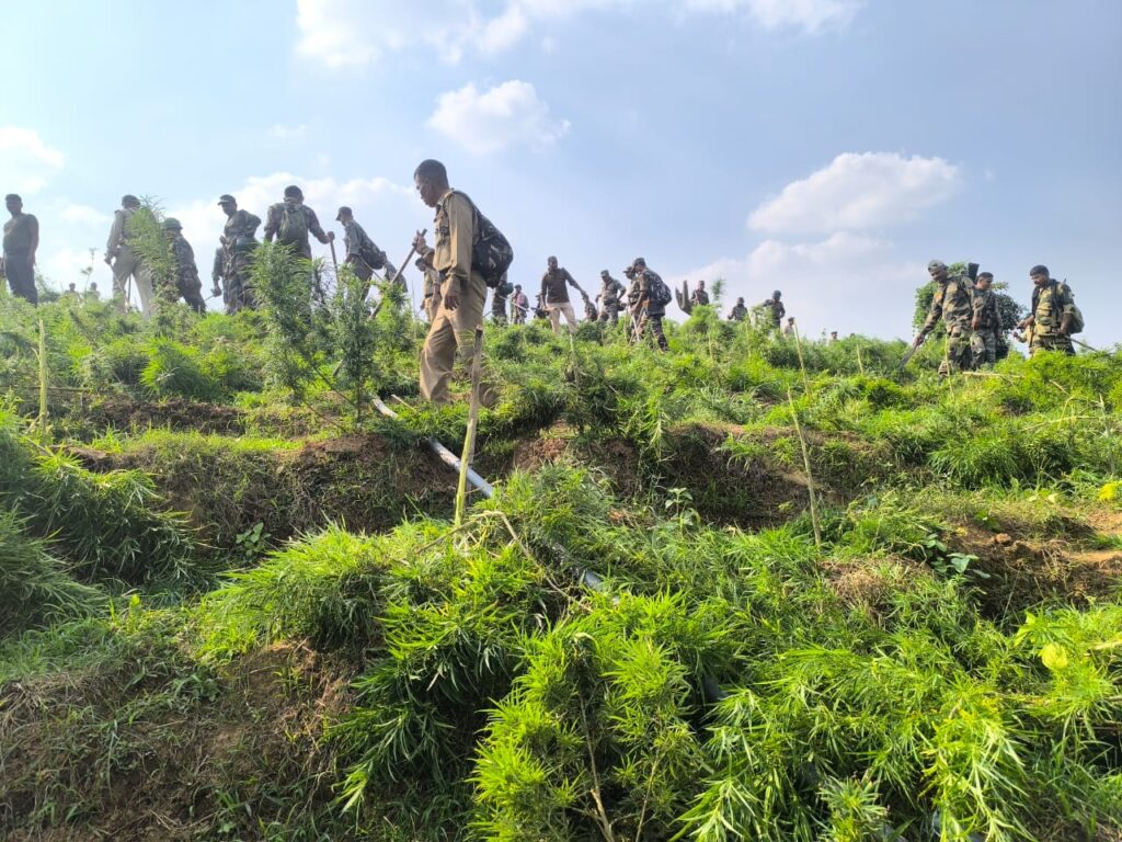 Sepahijala, Tripura, 30th of November, 2025 : Sepahijala District Police, in joint operations with BSF, TSR battalions, Forest officials and other agencies, carried out a massive crackdown on illicit Ganja (cannabis) cultivation on 30th November, 2025 from early of the morning at various locations of the district.