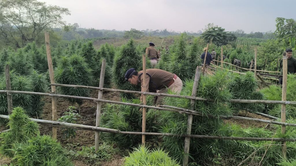 Sepahijala, Tripura, 31st of December 2025 : On the basis of secret information Sepahijala District Police, in joint operations with BSF, TSR battalions, Forest officials and other agencies carried out a massive crackdown on illicit Ganja (cannabis) cultivation on Tuesday (30th December, 2025) from the morning 7:35 am at various locations of the district.