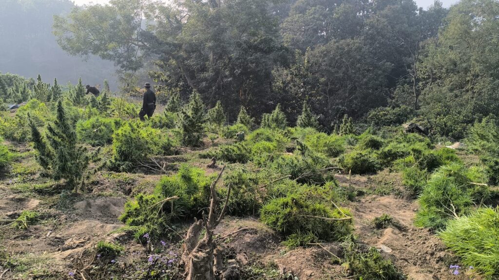 Sepahijala, Tripura, 9th of January, 2026 : On the basis of secret information Sepahijala District Police, in joint operations with BSF, TSR battalions, Forest officials and other agencies, carried out a massive crackdown on illicit Ganja (cannabis) cultivation on Friday (9th January, 2026) from the afternoon 1pm at various locations of the district.