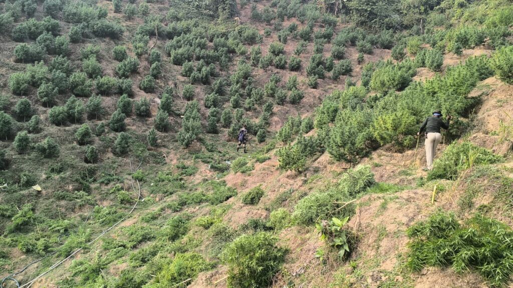 Sepahijala, Tripura, 3rd of January, 2026 : On the basis of secret information Sepahijala District Police, in joint operations with BSF, TSR battalions, Forest officials and other agencies, carried out a massive crackdown on illicit Ganja (cannabis) cultivation on Saturday (3rd January, 2026) from the morning 8:00 am at various locations of the district.