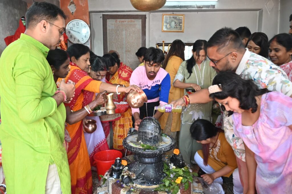 Agartala, 9th of March 2024 : Devotees pray and offering milk to Shiv Ling on the occasion Maha Shivaratri Festival at Lakshmi Narayan Temple, Agartala on Saturday (9th March, 2024).