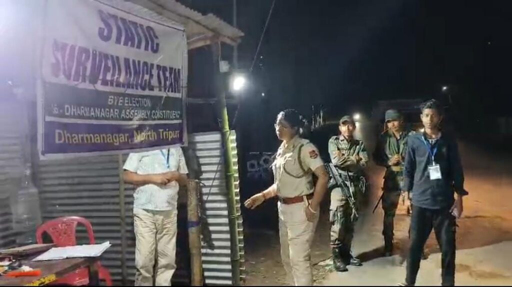 According to sources, a total of six nak checking points have been set up across the Dharmanagar area. Personnel have been deployed at each point round the clock, carrying out their duties without interruption.On the day, in the Dighalbak area of Dharmanagar town, police stopped and checked several two-wheelers and four-wheelers under strict supervision. The intensified checking aims to prevent any violation of election rules and curb the transportation of illegal items.The administration has stated that such nak checking drives will continue in the coming days to ensure a free, fair, and peaceful by-election.