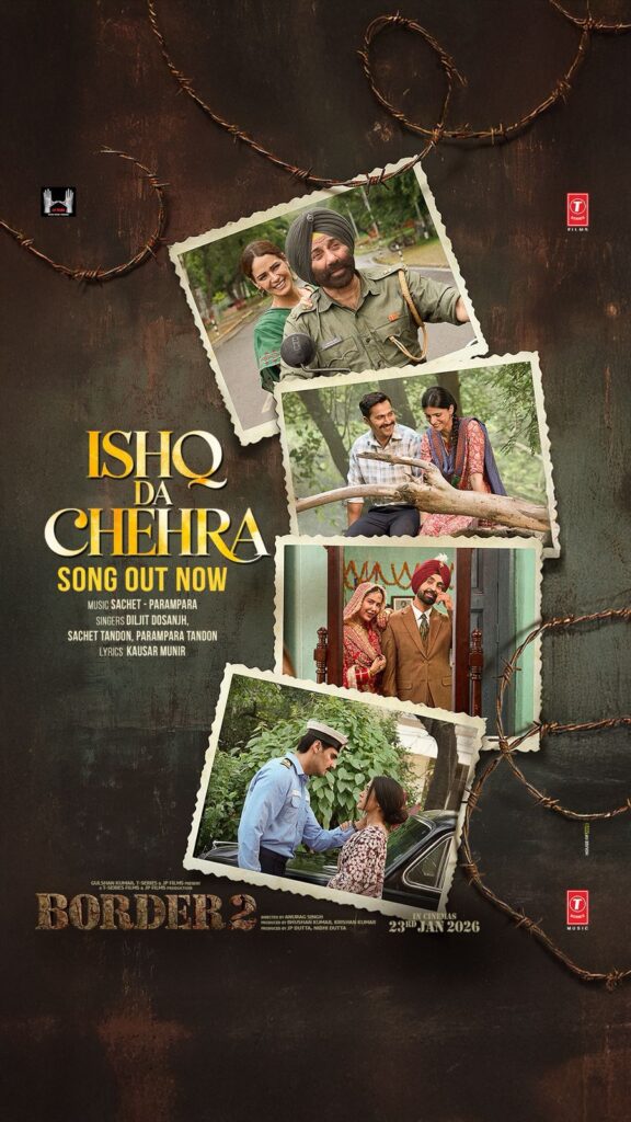 Through heart-warming montages, the track reveals tender, intimate moments shared by the characters with their partners, highlighting love as a powerful anchor amidst duty and sacrifice. Composed by the celebrated duo Sachet-Parampara, with heartfelt lyrics by Kausar Munir and sung by Diljit Dosanjh, Parampara Tandon, and Sachet Tandon, ‘Ishq Da Chehra’ weaves together the stories of Sunny Deol and Mona Singh, Varun Dhawan and Medha Rana, Diljit Dosanjh and Sonam Bajwa, and Ahan Shetty and Anyaa Singh. Each pairing reflects a different shade of love that is unconditional and resilient, adding emotional depth to the larger narrative of Border 2.