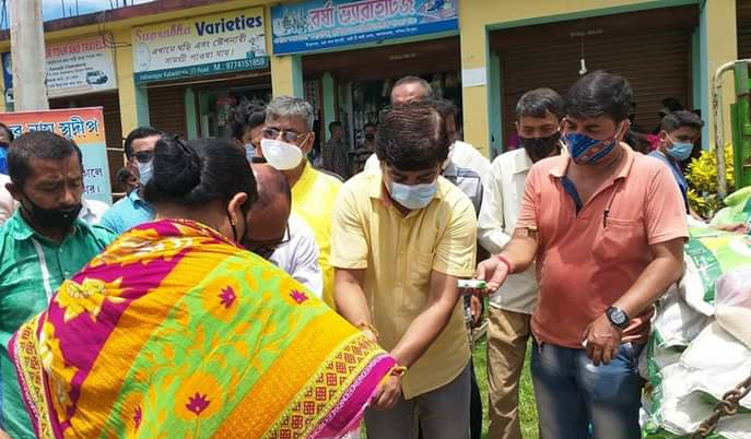 Distribution of Food Items in Indranagar among the poor families for the Covid situation initiated by the Sudip Roy Barman Fans Club on Today.