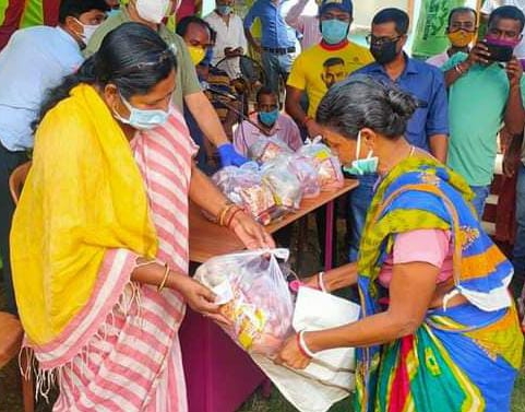 MP Pratima Bhoumik distribution of Food Packets among the poor families for the Covid situation in Barjala on Today.