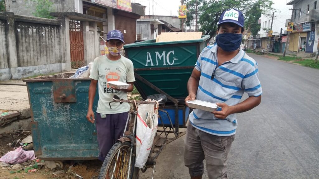 Distribution of Nutritious food Packets among the cleaning staff of Agartala Municipal Corporation for the Covid situation initiated by Annamrita Tripura (Formerly known as ISKCON Food for Life).