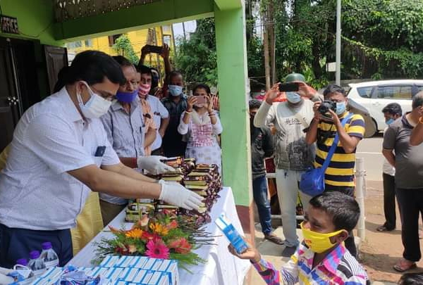 Dr. Manik Saha distribution of Food Packets among the poor families for the Covid situation at Satadal Sangha, Agartala on Wednesday (9th June 2021).