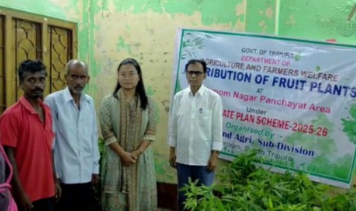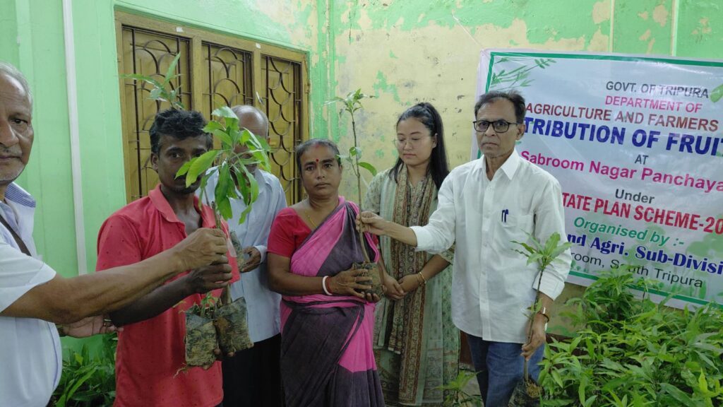 Sabroom, Tripura, 26th of August 2025 : With the initiative of Agriculture and Farmers Welfare Department organized Distribution of Fruit Plants in collaboration with the Satchand Agriculture department at Anand Para Community Hall, Sabroom, Tripura on Tuesday (26th August, 2025). According to report, 250 beneficiaries were distributed ten betel nut seedlings, ten cardamom lemon seedlings and ten mango seedlings under Urban Horticulture Scheme 2025.