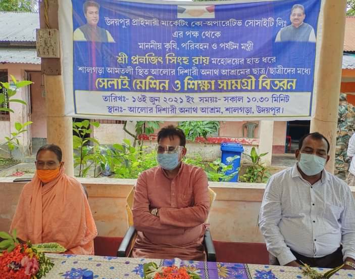 Distribution of Sewing Machines and Educational Materials on Today (16th June 2021) among the students of Alor Dishari Orphanage Home on behalf of Udaipur Primary Marketing Co-Operative Society Limited at Salgara Amtali, Udaipur. Hon’ble Agriculture, Transport & Tourism Minister Pranajit Singha Roy was present there.