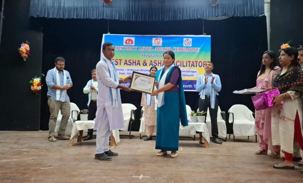 Dharmanagar, Tripura, 10th of March, 2026 : In recognition of their notable work during the financial year 2025–26, a district-level felicitation ceremony for ASHA workers and ASHA facilitators of North Tripura district was held on Tuesday. The programme was organized by the District Health and Family Welfare Department.The event took place at Ardhendu Bhattacharya Smriti Bhavan in Dharmanagar, where ASHA workers and health staff from different parts of the district were present.The chief guest of the programme was Assistant Sabhadhipati of North Tripura Zilla Parishad, Bhabhatush Das. Also present were District Magistrate and Collector of North Tripura, Chandni Chandran (IAS), Chief Medical Officer of the district, Dr. Dipak Halder, and several other dignitaries.
