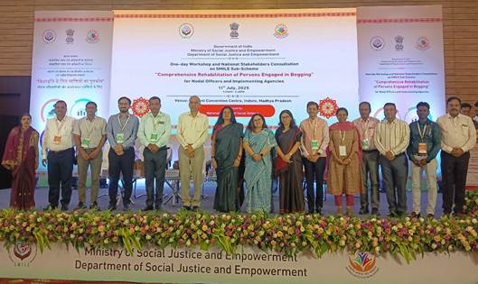 New Delhi, Delhi, 11th of July 2025 : The Union Ministry of Social Justice and Empowerment (M/o SJE) organized a National Workshop and Orientation Programme today at Indore, focusing on the SMILE Sub-Scheme for Comprehensive Rehabilitation of Persons Engaged in the Act of Begging (SMILE-B).TheInaugural Session was presided over by Secretary (D/o SJE), Shri Amit Yadav, along with participation from senior dignitaries from the Central and State Governments.
