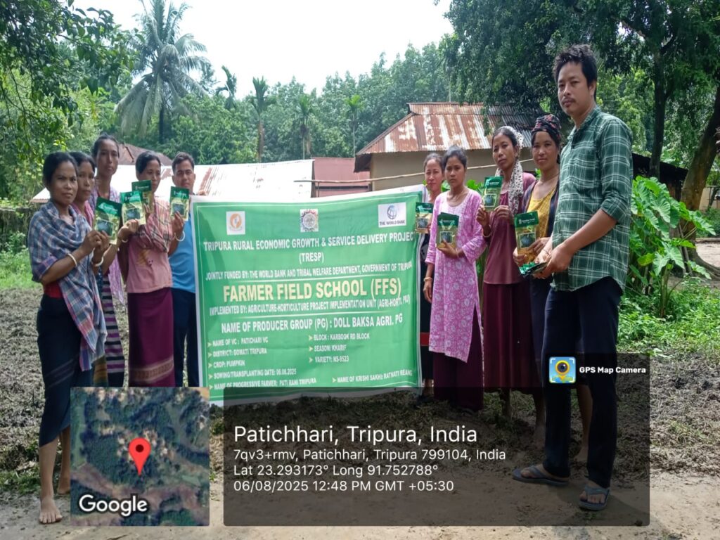 At Karbook R.D. Block, the Doll Baksa Agri PG (Paticharri) hosted its first FFS on pumpkin cultivation using tissue paper and soilless media for seedling production, along with plant spacing demonstrations led by TSA’s Sri Suman Das and BMLT’s Sri Ranjit Ram Tripura, supported by the Block Program Manager and Cluster Coordinator (Agri-Horti). These activities reflect DPMU Gomati’s continued commitment to strengthening community-based livelihood initiatives, capacity building, and sustainable income generation under TRESP.