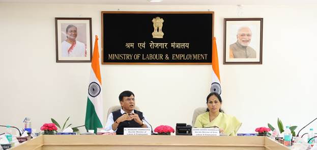 New Delhi, Delhi, 28th of August, 2024 : A round table meeting was held under the chairmanship of Dr. Mansukh Mandaviya, Union Minister for Labour & Employment and Youth Affairs & Sports, with representatives from Central Trade Union Organisations (CTUOs) in New Delhi today. Union Minister of State for Labour & Employment, Smt. Shobha Karandlaje along with senior officials of Ministry were also present on the occasion.