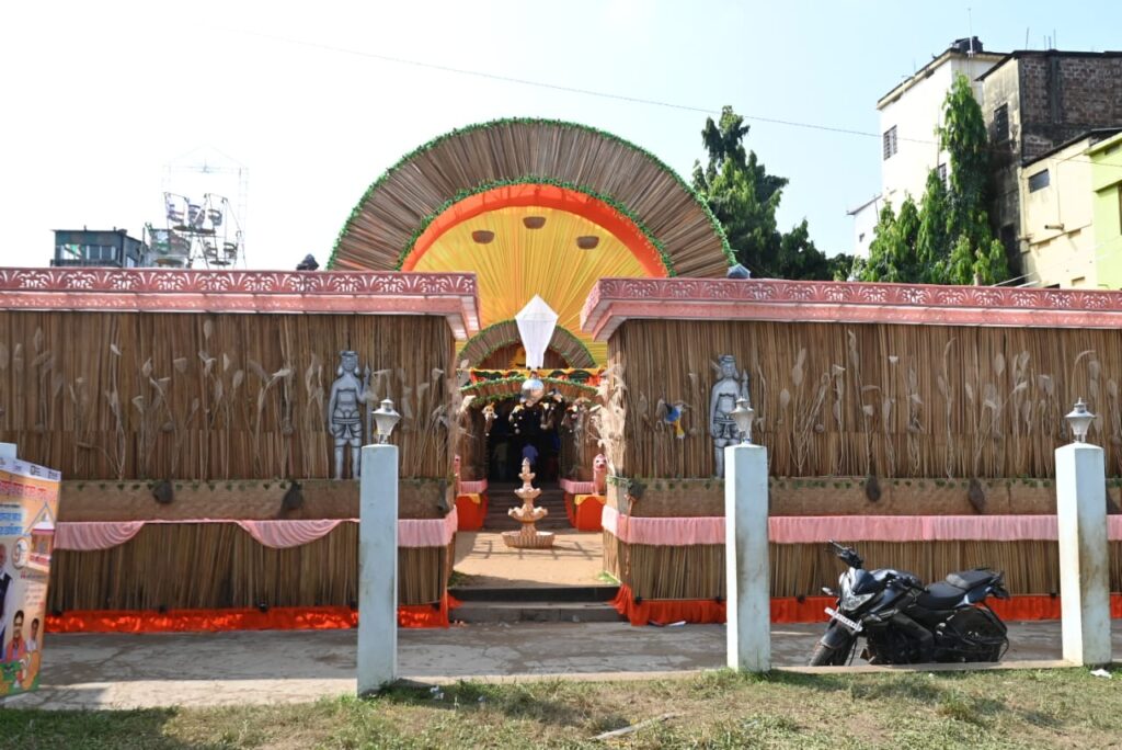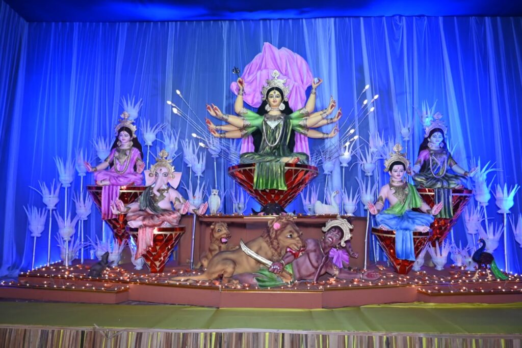 Agartala, Tripura, 12th of October 2024 : Central Road Yuva Sanstha Club’s Goddess Durga Idol and Puja Pandal at Maharajgunj Bazar area, Agartala, Tripura.