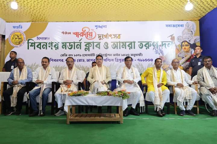 Agartala, Tripura, 5th of October 2024 : Hon’ble Chief Minister Dr. Manik Saha inaugurated Durga Puja Pandal organized by Shibnagar Modern Club & Amra Tarun Dal at Shibnagar, Agartala on Saturday (5th October, 2024). Hon’ble Mayor of Agartala Municipal Corporation (AMC) and MLA Dipak Majumder, Hon’ble MP and Tripura Pradesh Bharatiya Janata Party (BJP) President Rajib Bhattacharjee and many other dignitaries were present in the inauguration ceremony.