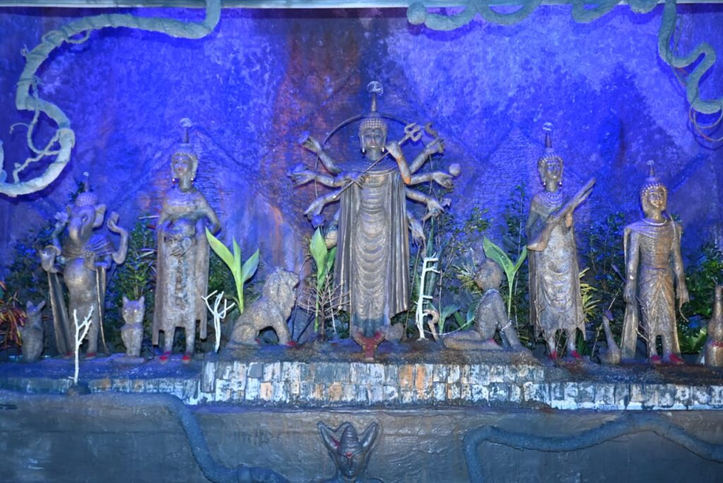 Agartala, Tripura, 12th of October 2024 : Old National Club’s Goddess Durga Idol and Puja Pandal at Lichubagan, Agartala, Tripura.