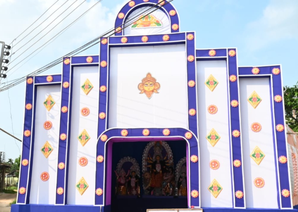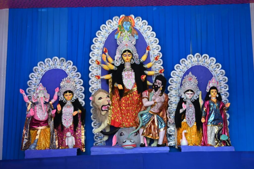 Agartala, Tripura, 12th of October 2024 : South Indranagar Social Organization’s Goddess Durga Idol and Puja Pandal at South Indranagar, Agartala, Tripura.