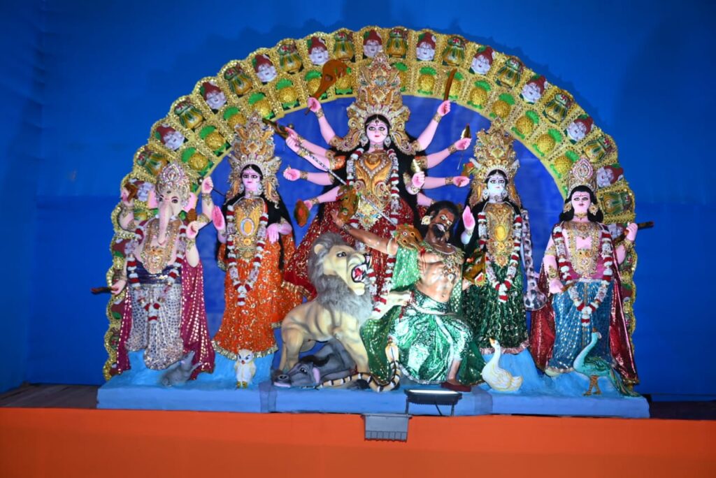 Agartala, Tripura, 12th of October 2024 : Tarun Sangha Club’s Goddess Durga Idol and Puja Pandal at Dhaleswar, Agartala, Tripura.
